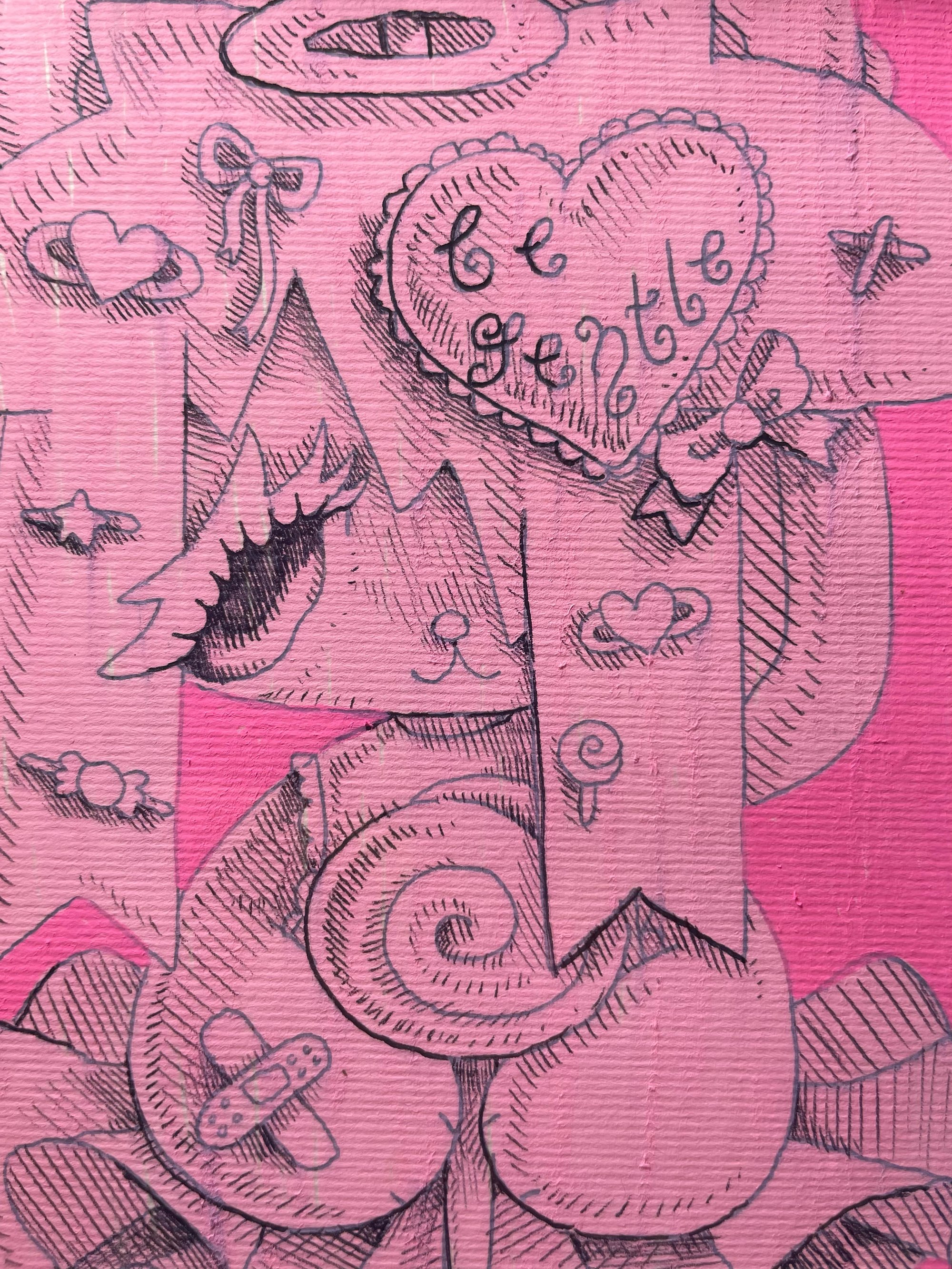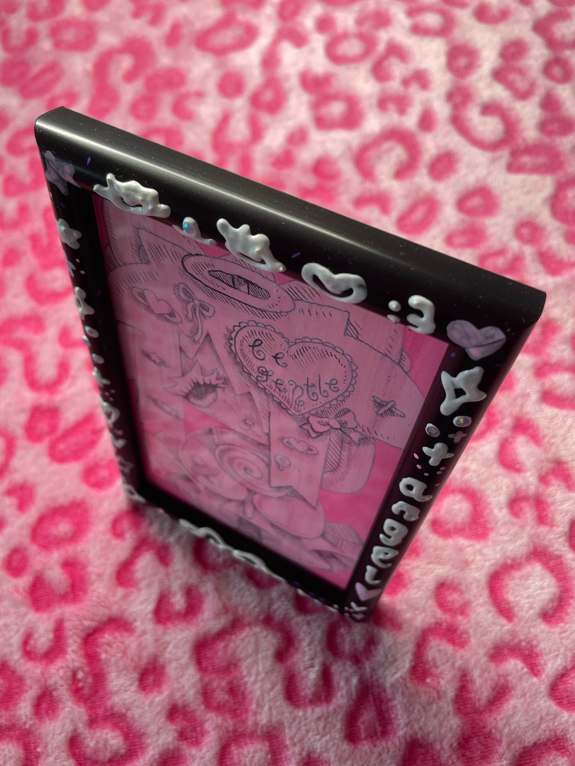 biro and paint on card, in a black customised frame with 3d and diamanté detail ♡