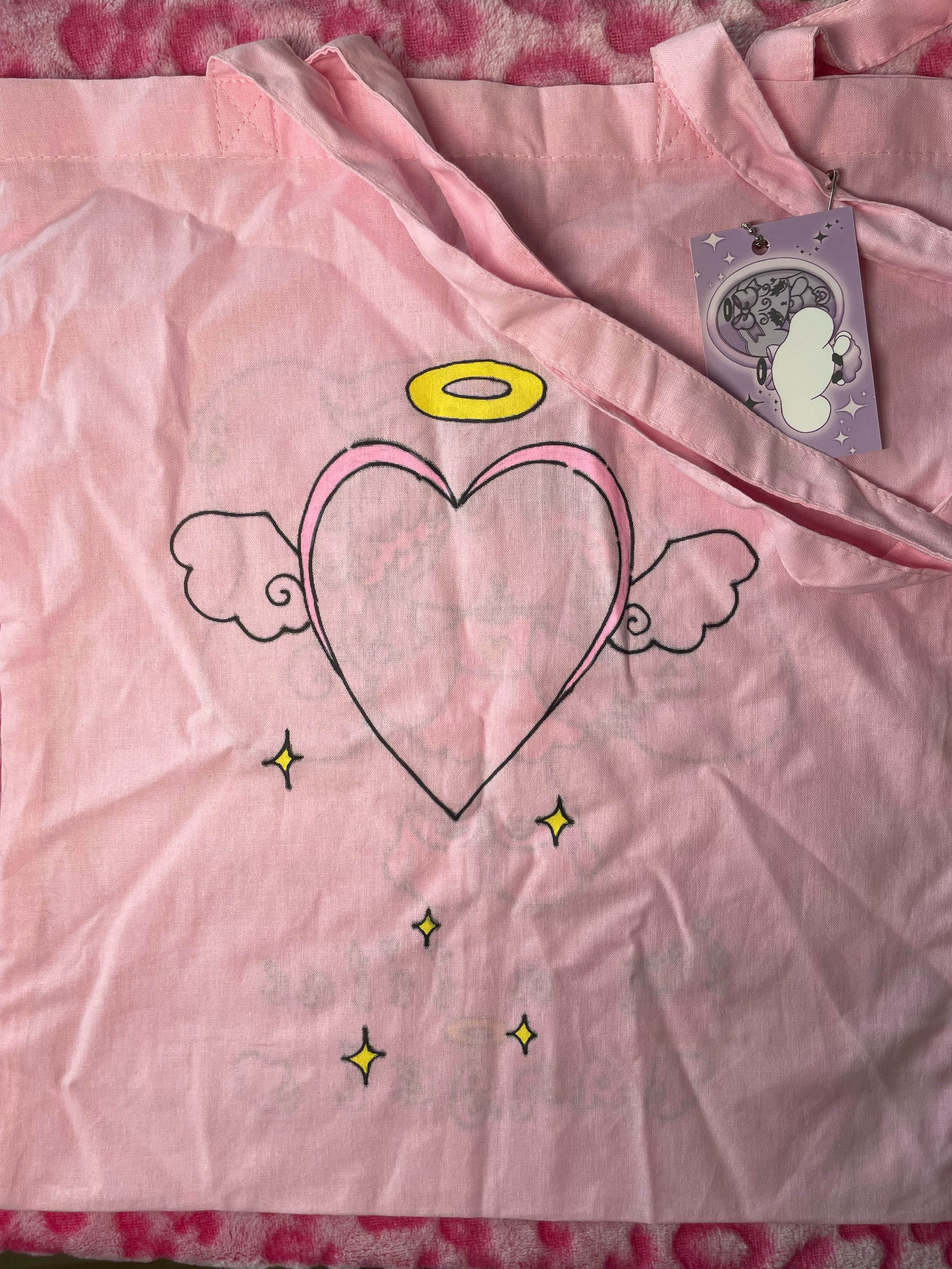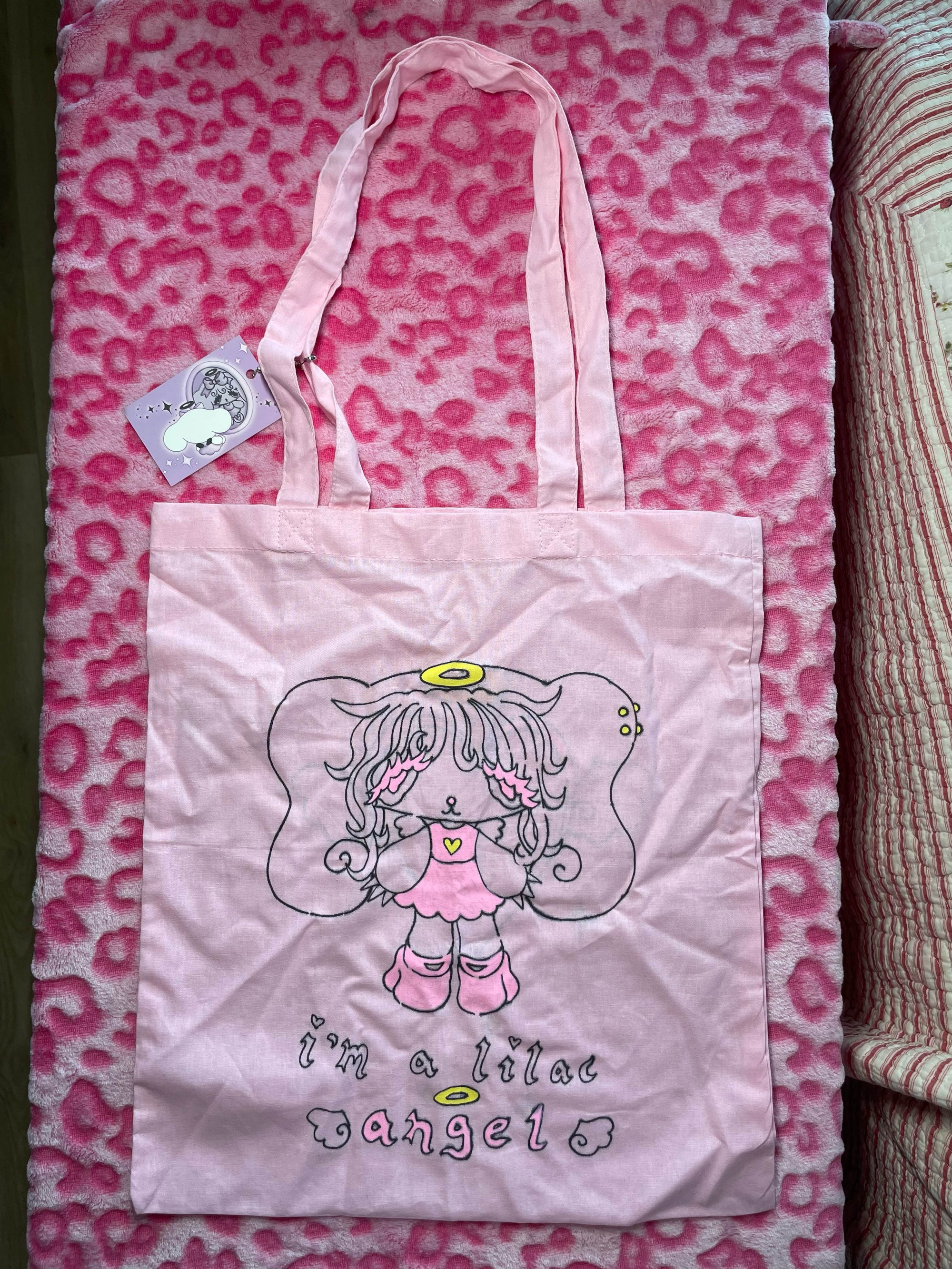 hand customised pastel pink tote bag with ink and paint detail ♡