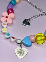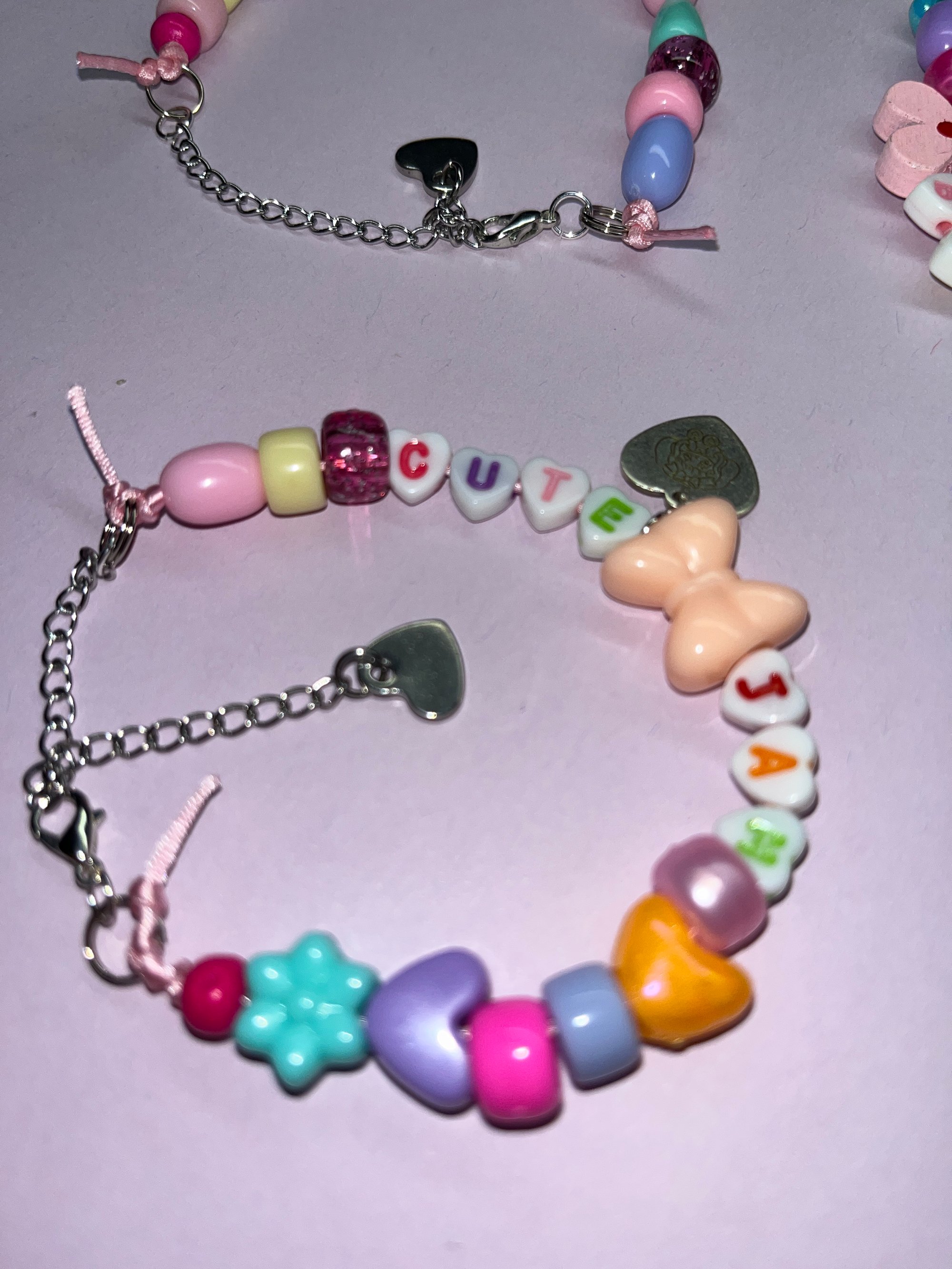 pink cord bracelet with kandi beads, silver heart extender and sugarglaze bunny heart shaped charm ♡